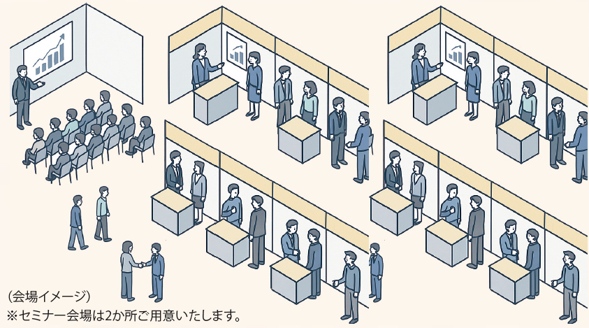 - 会場はシアター形式で30名収容予定。セミナーは特設YouTubeチャンネルを通じ会期中開始のアーカイブ配信を実施。